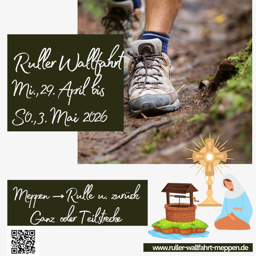 Die 5 tägige Ruller Wallfahrt von Meppen nach Rulle ist immer vom 29.4.-03.05. 1712 begann die Wallfahrt und Pilger gehen bis zu 140 KM. Informationen und die Anmeldung richten Sie an ...mehr