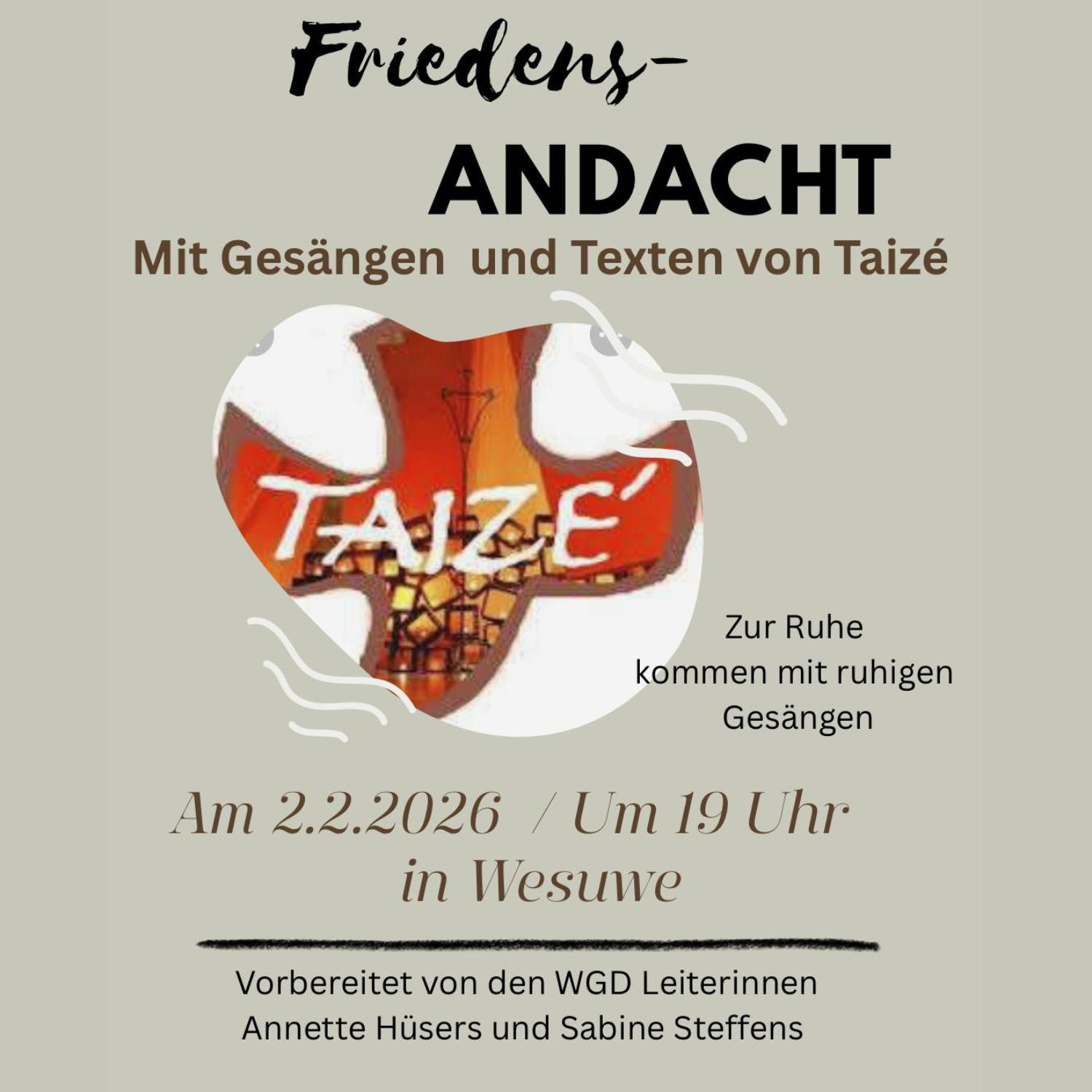 Mo., 02.02.2026, 19 Uhr ökumenische Friedensandacht in St. Clemens, Wesuwe