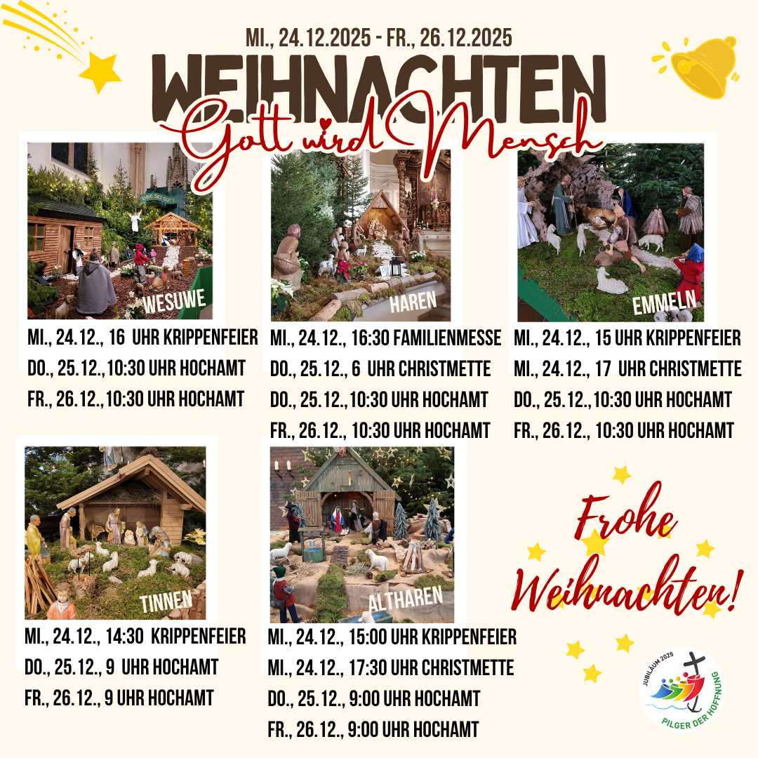 Mi., 24.12.2025, 16:30 Uhr Familienmesse mit Krippenspiel in St. Martinus Haren