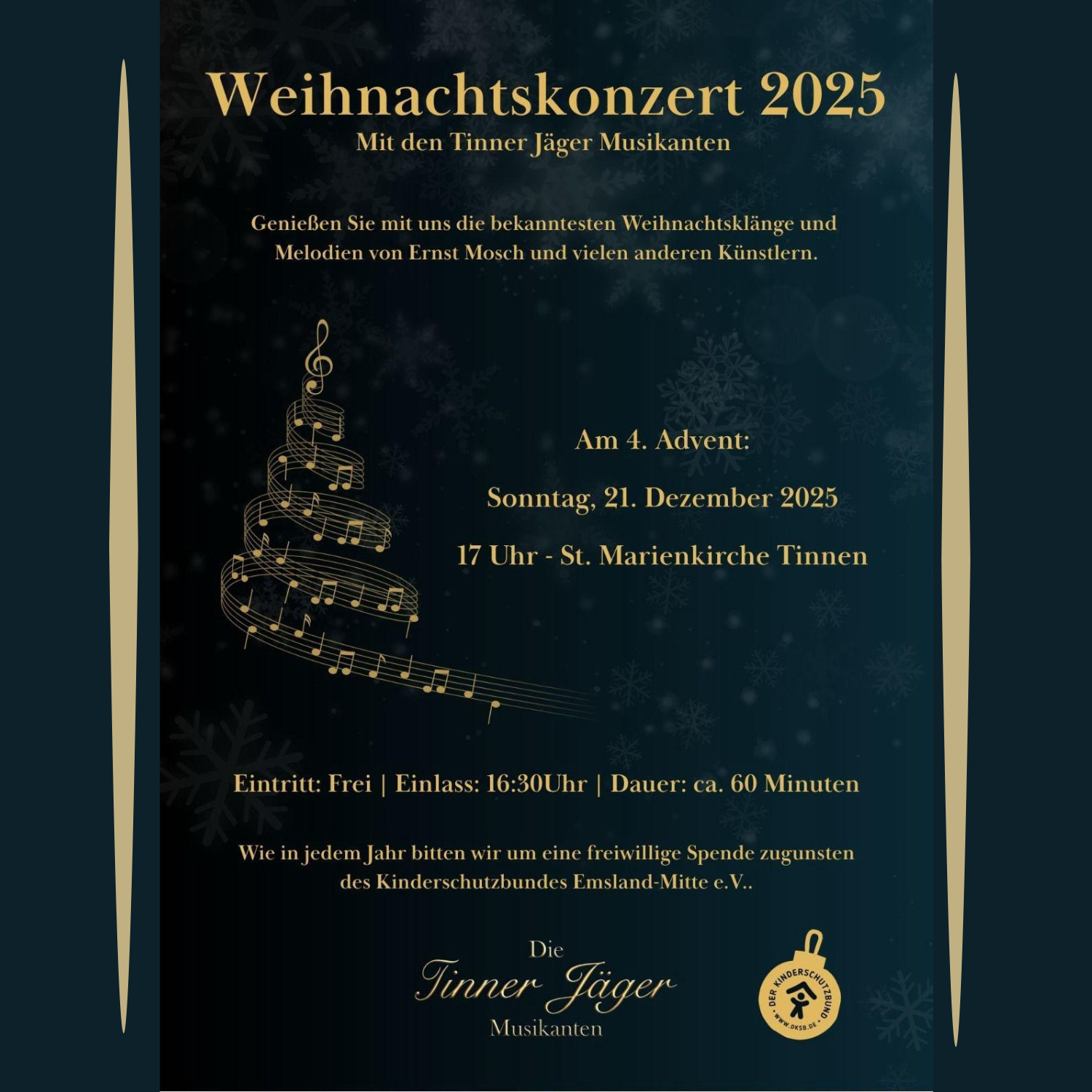 Weihnachtskonzert in St. Marien in Tinnen mit den Tinner Jäger Musikanten