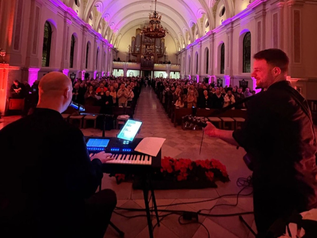 „SING MIT!“ - „Es war MEGA!“ hörte man viele sagen und „DANKE für diesen großartigen Abend!“ "Es ging zu Herzen!" "Ich war 8 Jahre nicht mehr zur Kirche. Dieses Jahr Heilig Abend gehe ich wieder hin!" Eine ganz wunderbare Idee und eine sehr schöne Veranstaltung organisierte der PGR Haren zum Abschluss des gemeinsamen Krippenweges auf Pfarreiengemeinschaftsebene Tinnen-Emmeln-Haren-Altharen-Wesuwe am Montag, 22.12.2025, 18:30 Uhr. Ca. 800 Personen waren gekommen. Eine Kirche bis auf den letzten Platz gefüllt! Jeder konnte mitsingen über einen Liederzettel oder einen QR–Code. Musikalisch gestaltet wurde der Abend durch Florian Telgen von der Band Nightlive und Julian Altevers. Für eine stimmungsvolle Ausleuchtung des Domes, so wie die Technik, sorgte Hendrik Gebben von Overdrive. Es war sooo schön sich gemeinsam über den Gesang und den tollen Sound auf das Weihnachtsfest vorzubereiten. Es kam echte Freude auf! Viele junge Familien waren gekommen!! Ein herzlicher Dank sei dem Pfarrgemeinderat Haren für diese wunderbare Idee und die engagierte Vorbereitung gesagt. Jonas Koop führte mit kurzen aber so guten Worten durch das Programm, das sie überhaupt nicht störten, sondern eine nette Unterbrechung war. Alina Schulte und Greta Rüschen unterstützen ihn. Pastor Tobias Kotte spendete zum Ende den Schlusssegen. Von allen Seiten hörte der PGR: "Das müsst ihr wiederholen!" Ein herzliches DANKESCHÖN sei auch der Stadt Haren gesagt, die diese Veranstaltung finanziell möglich gemacht hat! Diese Veranstaltung hat alles, um zu einer neuen Harener Weihnachtstradition zu werden zwei Tage vor Heilig Abend. Also: Alle Jahre wieder…!