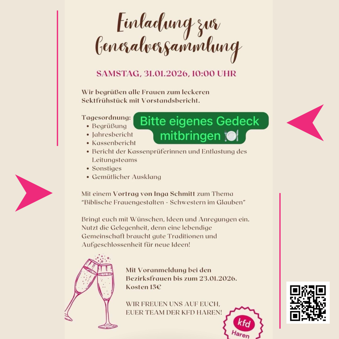 Sa., 31.01.2025, 10 Uhr kfd Haren Generalversammlung BDH