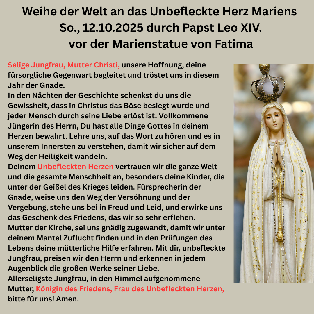Weihe der Welt an das Unbefleckte Herz Mariens vom 12.10.2025 durch Papst Leo XIV.