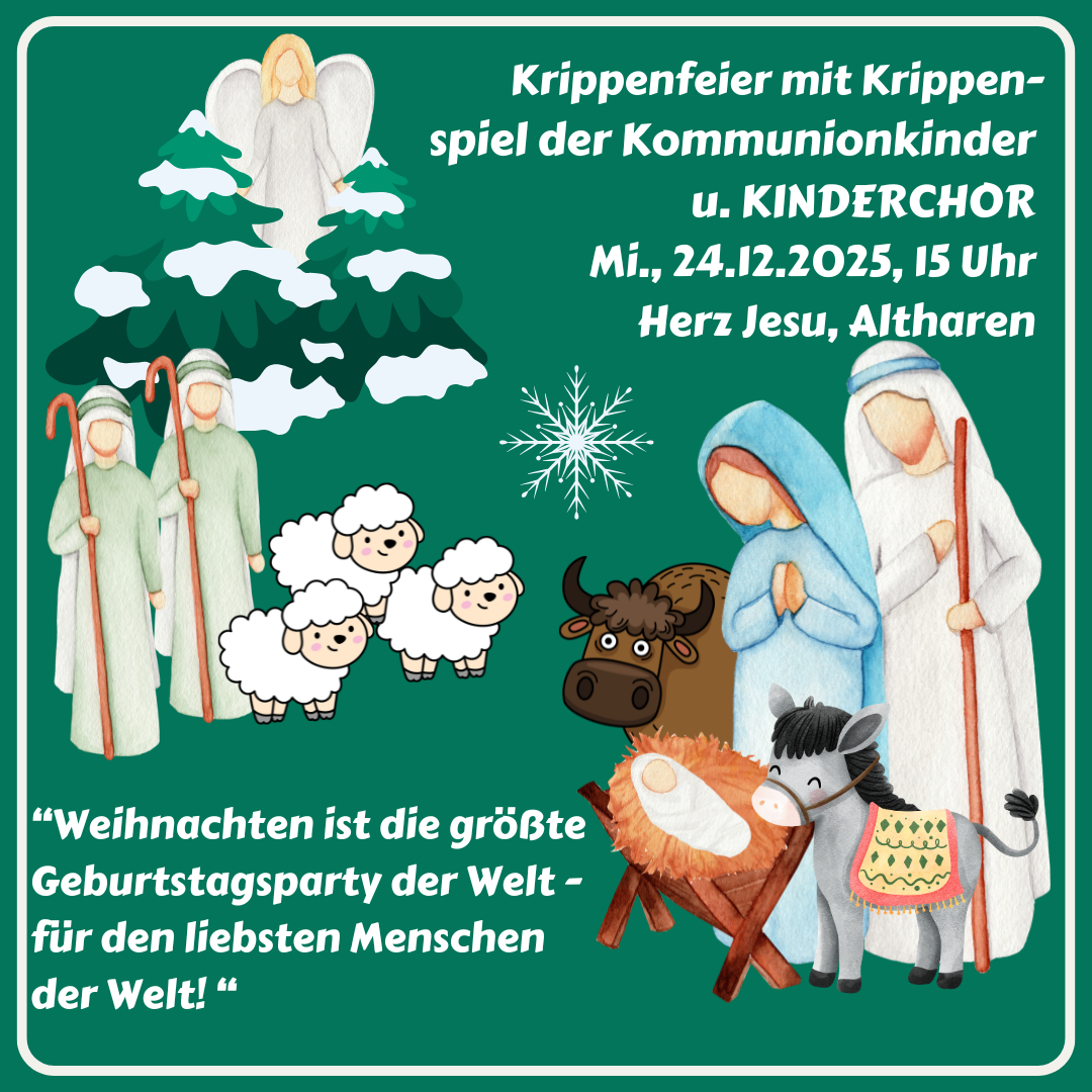 Mi., 24.12.2025, 15 Uhr Krippenfeier mit Krippenspiel und Kinderchor in Herz Jesu Altharen