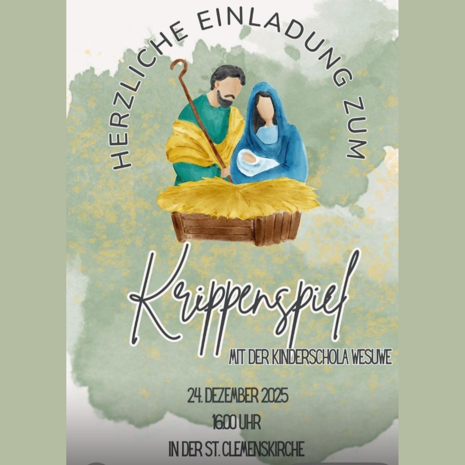 Mi., 24.12.2025, 16 Uhr Krippenspiel mit der Kinderschola in St. Clemens in Wesuwe