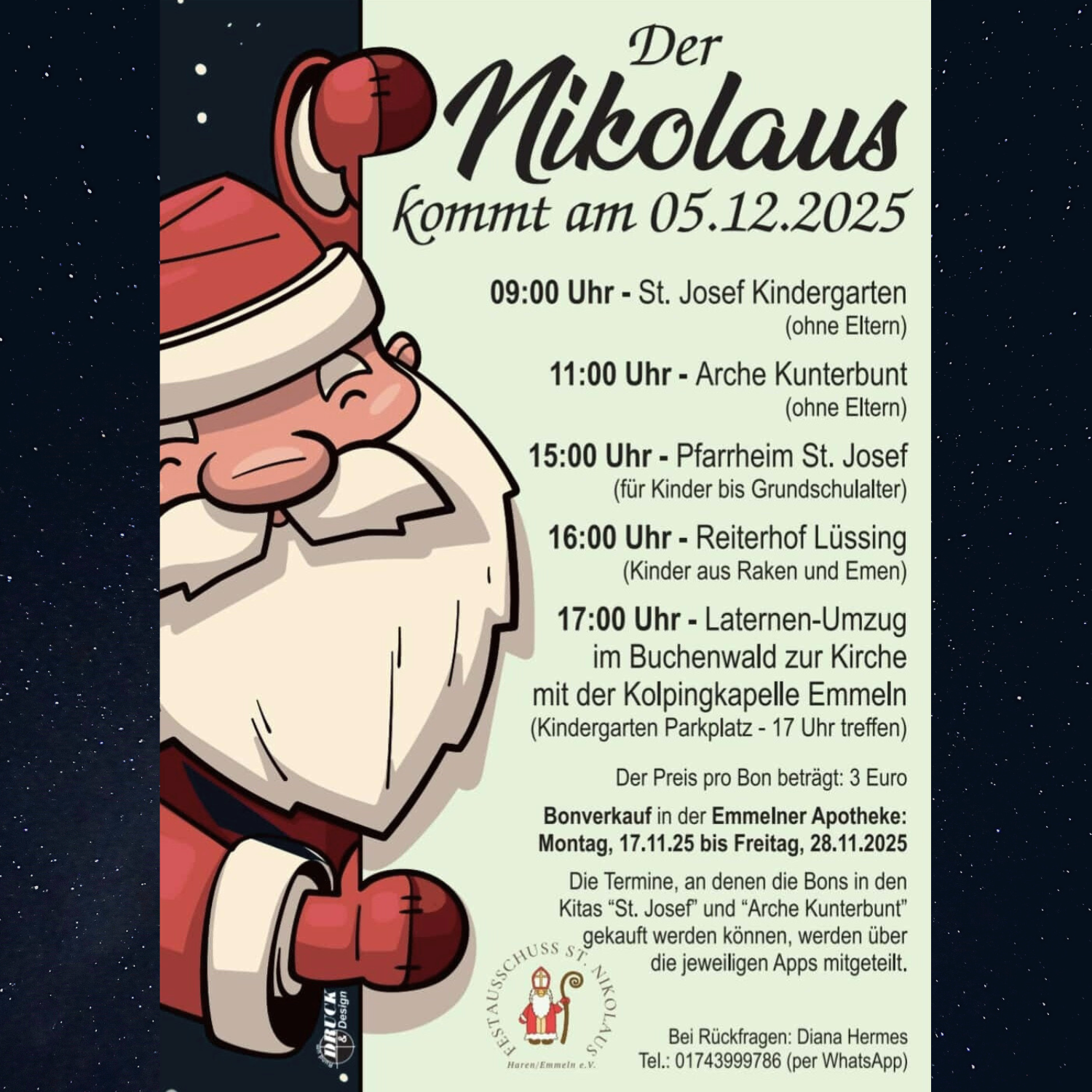 Nikolaus begleitet den Laternenumzug anschl. ist er in der Josefskirche in Emmeln