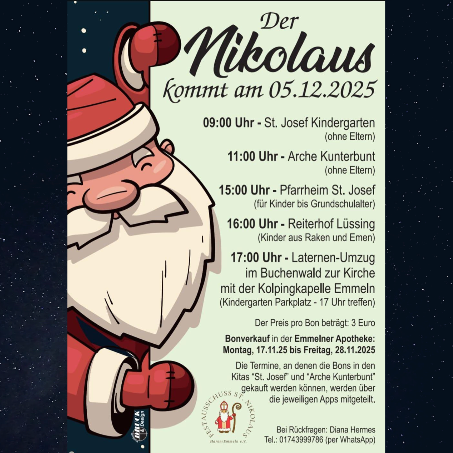 Fr., 05.12.2025, der Nikolaus kommt in St. Josef in Emmeln