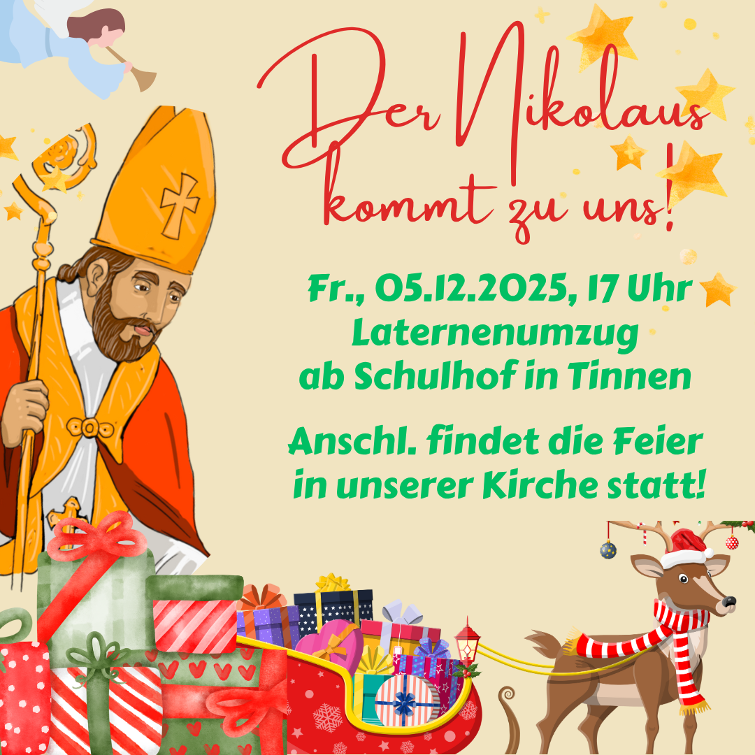 Fr., 05.12.2025, 17 kommt der Nikolaus nach St. Marien in Tinnen