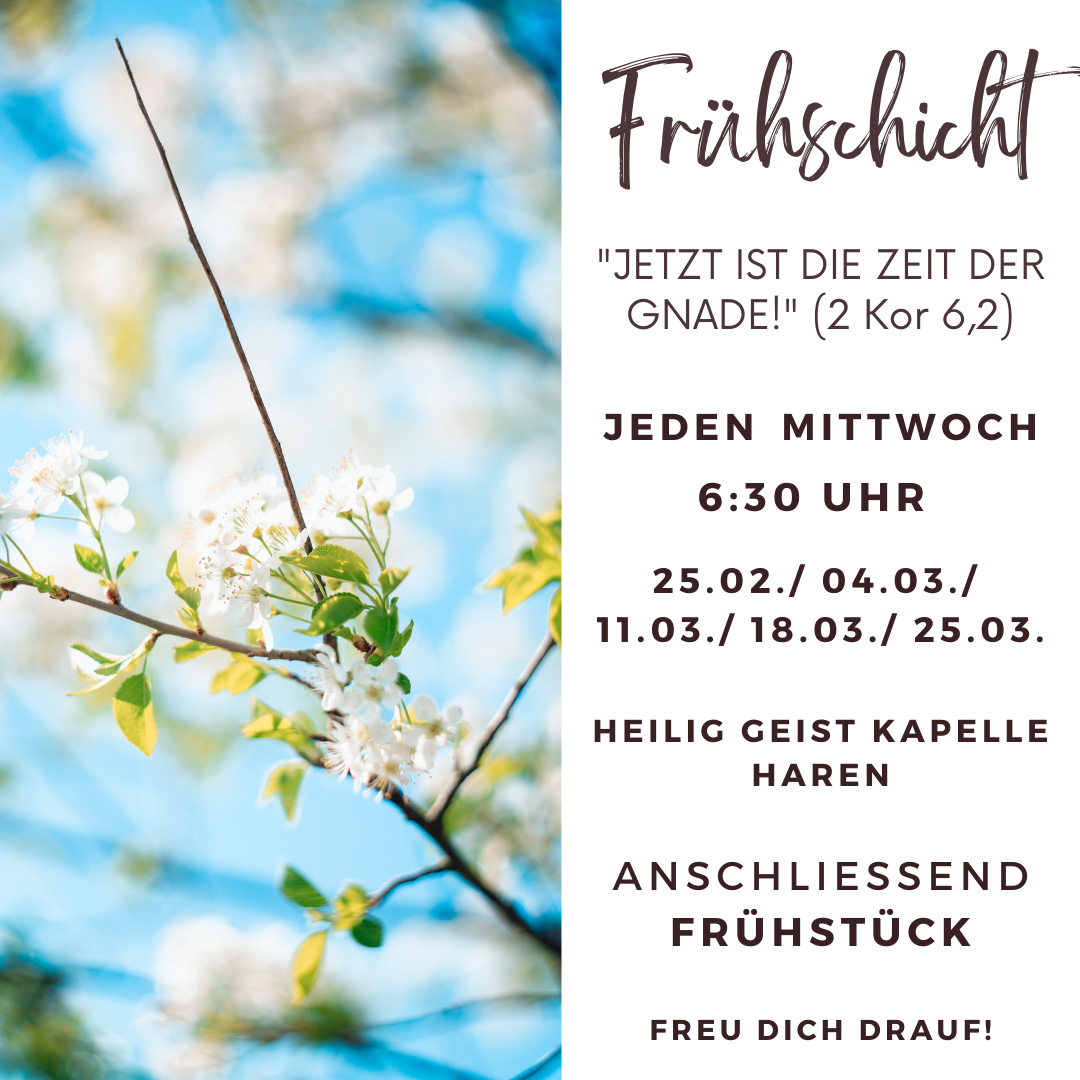 • Mi., 25.02.2026, 6:30 Uhr Frühschicht in der Heilig Geist Kapelle in Haren anschl. Frühstück
