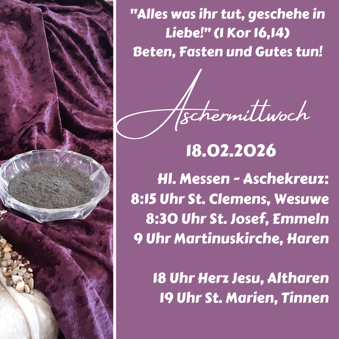 • Aschermittwoch, 18.02.2026, hl. Messe mit Auflegung des Aschekreuzes