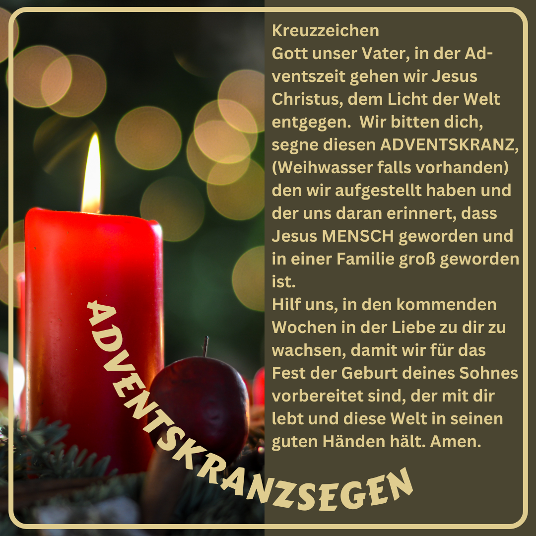 Herzliche Einladung den Adventskranz (mit Weihwasser) zu Hause zu segnen!