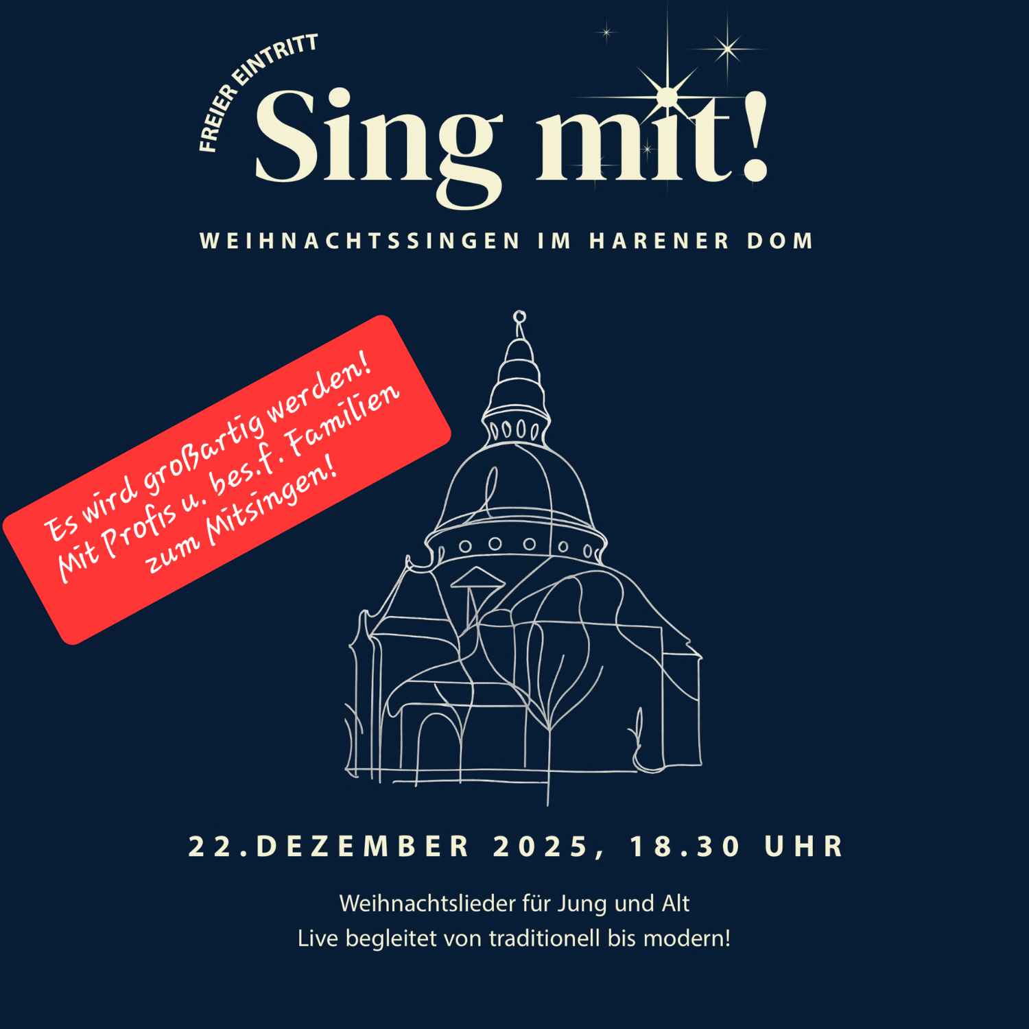 Herzliche Einladung zum Weihnachtssingen im Emslanddom Haren! Am
